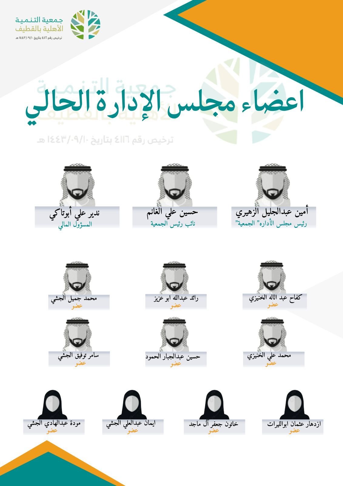اللجان (رئيس اللجنة/نائب الرئيس /الشؤون المالية /رياض الأطفال/الحضانة/نادي الفنون/التطوع/العلاقات العامة /الاعلام /النسائية/الصحية/التدريب/جائزة القطيف للإنجاز /سيدة جمال الاخلاق /الشبابية )